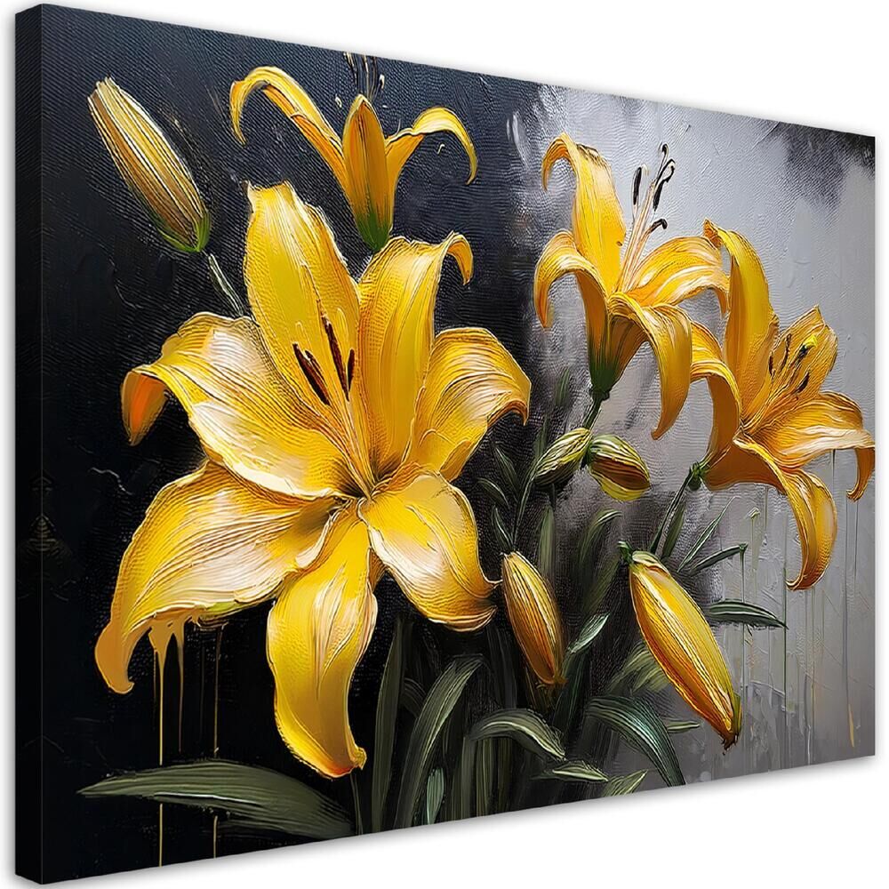 Leinwandbild, Blühende gelbe Lilien-Blumen-Pflanzen
