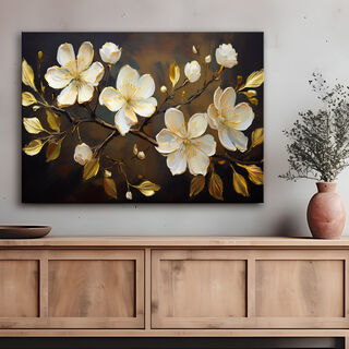 Leinwandbild, Weiße Blumen auf einem Zweig